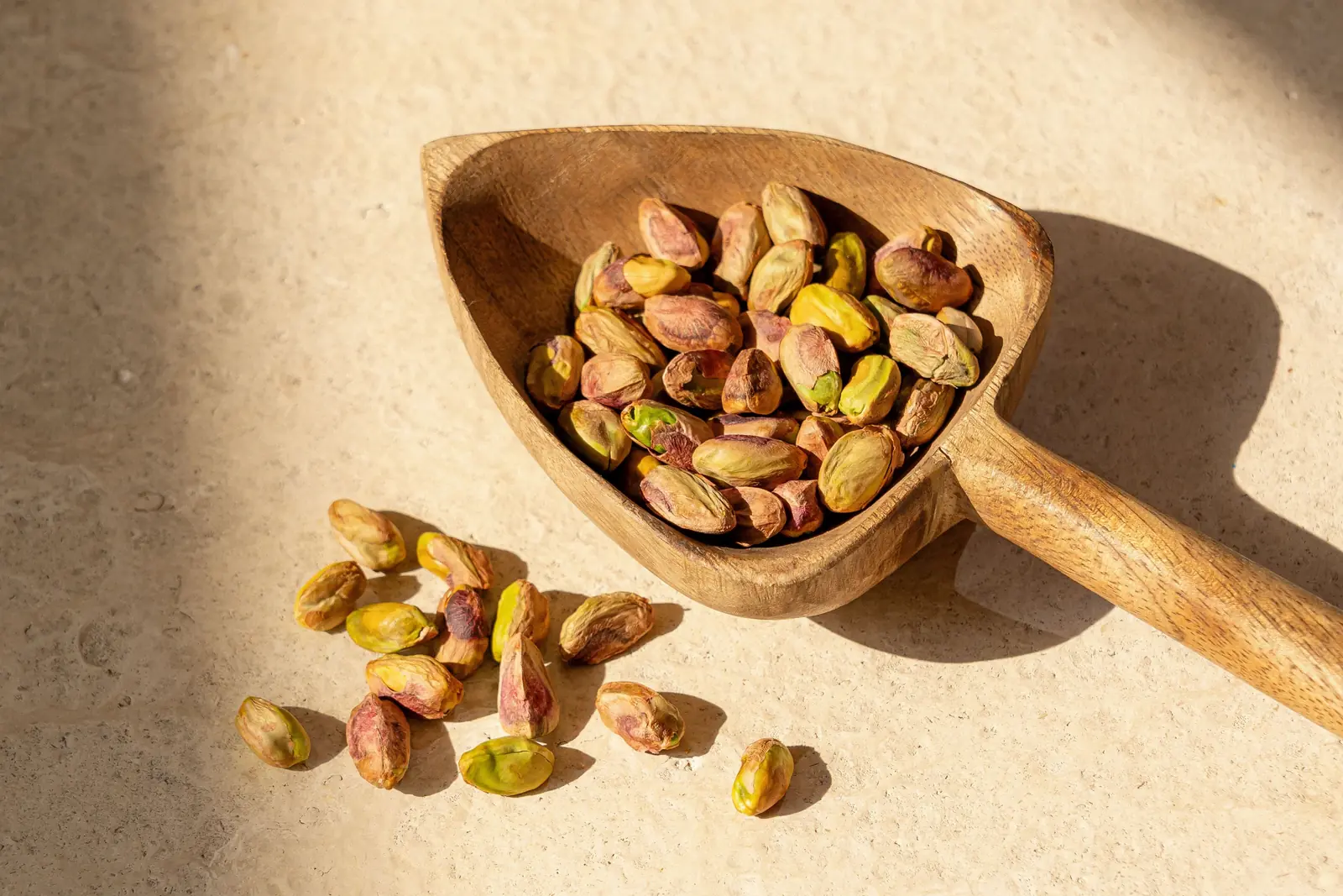 • Proteína completa para mantener la energía: Los pistachos son una fuente vegetal que aporta los 9 aminoácidos esenciales. La proteína contribuye al mantenimiento de la masa muscular y de los huesos en condiciones normales.